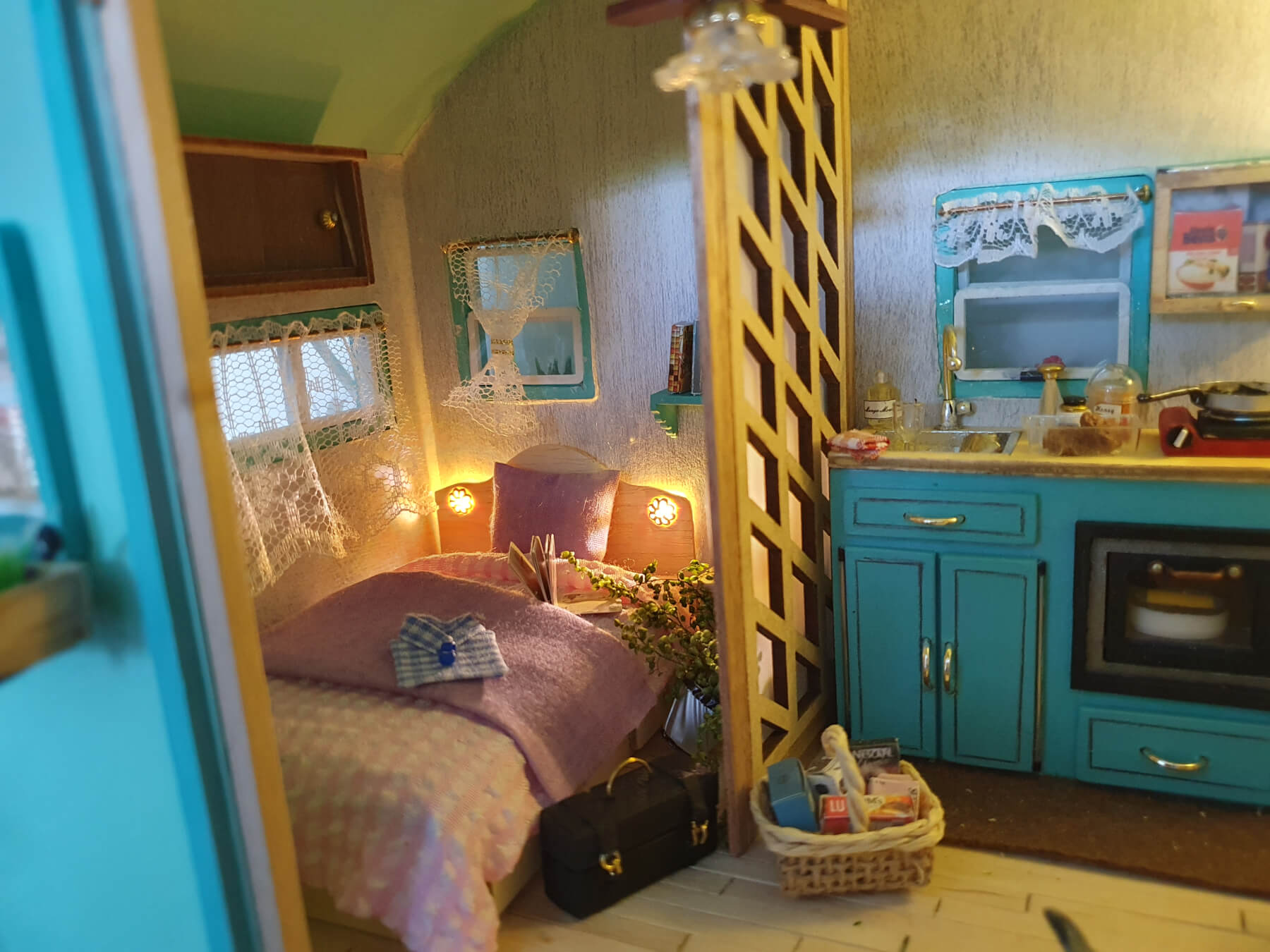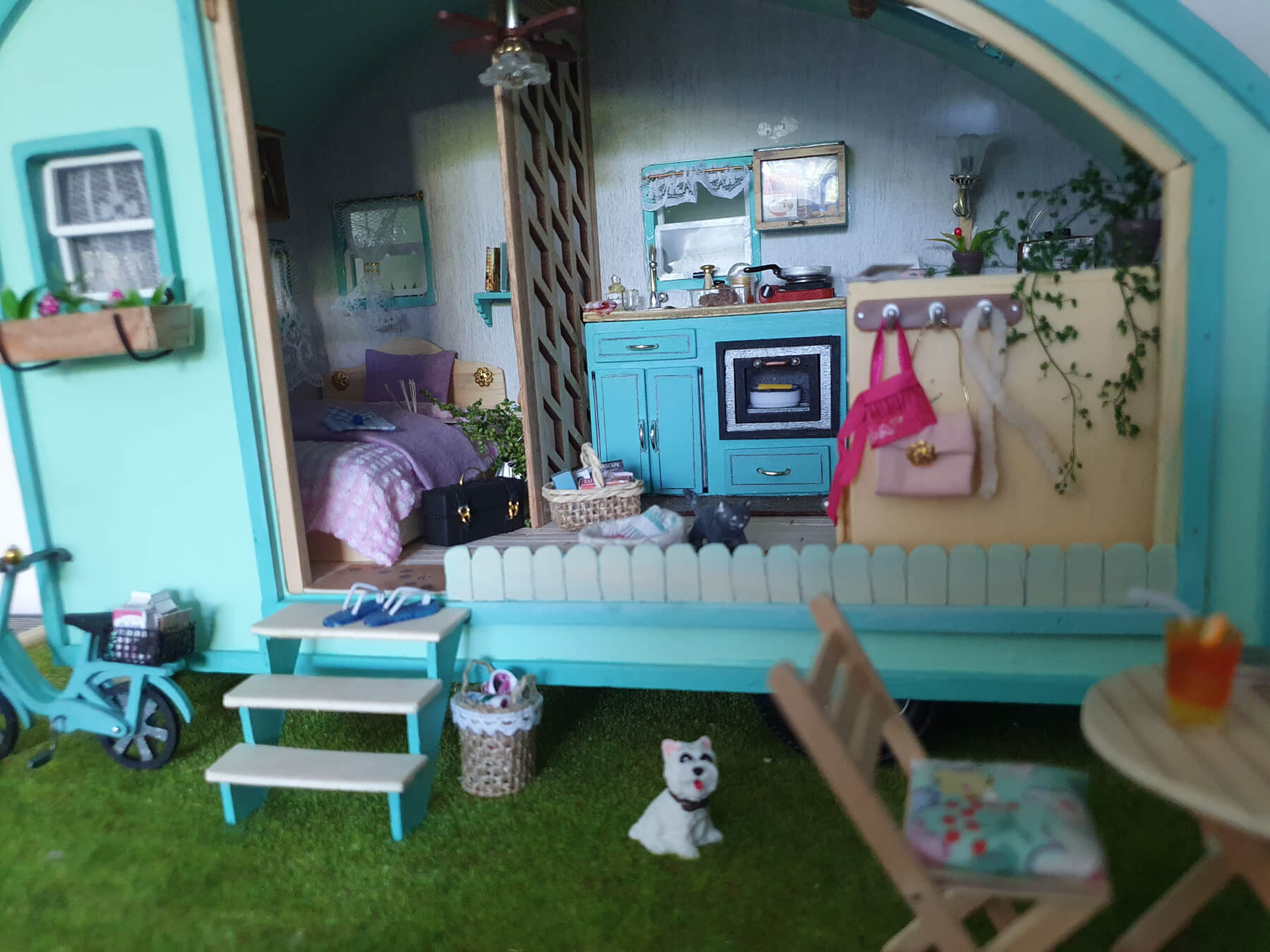 Réalisation d'une caravane au 1/24.La principale difficulté (qui nous a occupée pas mal de temps et de neurones) a été de faire l'arrondi du toit.